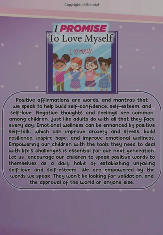 Teach your daughter to recognize her beauty, power, and worth before the world tries to define it for her. I Promise to Love Myself helps girls create an unshakable sense of self rooted in truth, not comparison. Every affirmation inside this empowering book becomes part of her daily emotional armor, helping her speak life over herself with love and confidence. This isn’t just a book, it’s a foundation for self-esteem, emotional wellness, and the bold belief that she is, and always will be, enough.